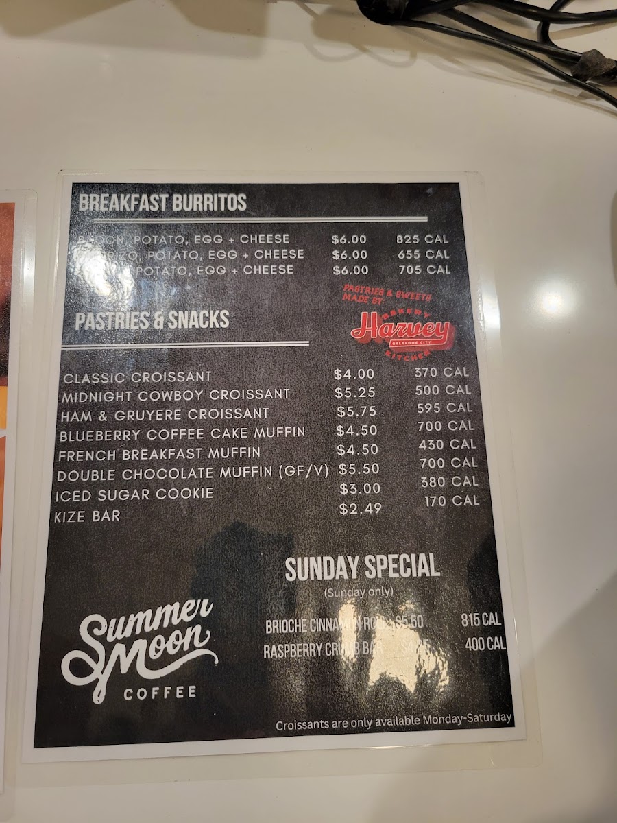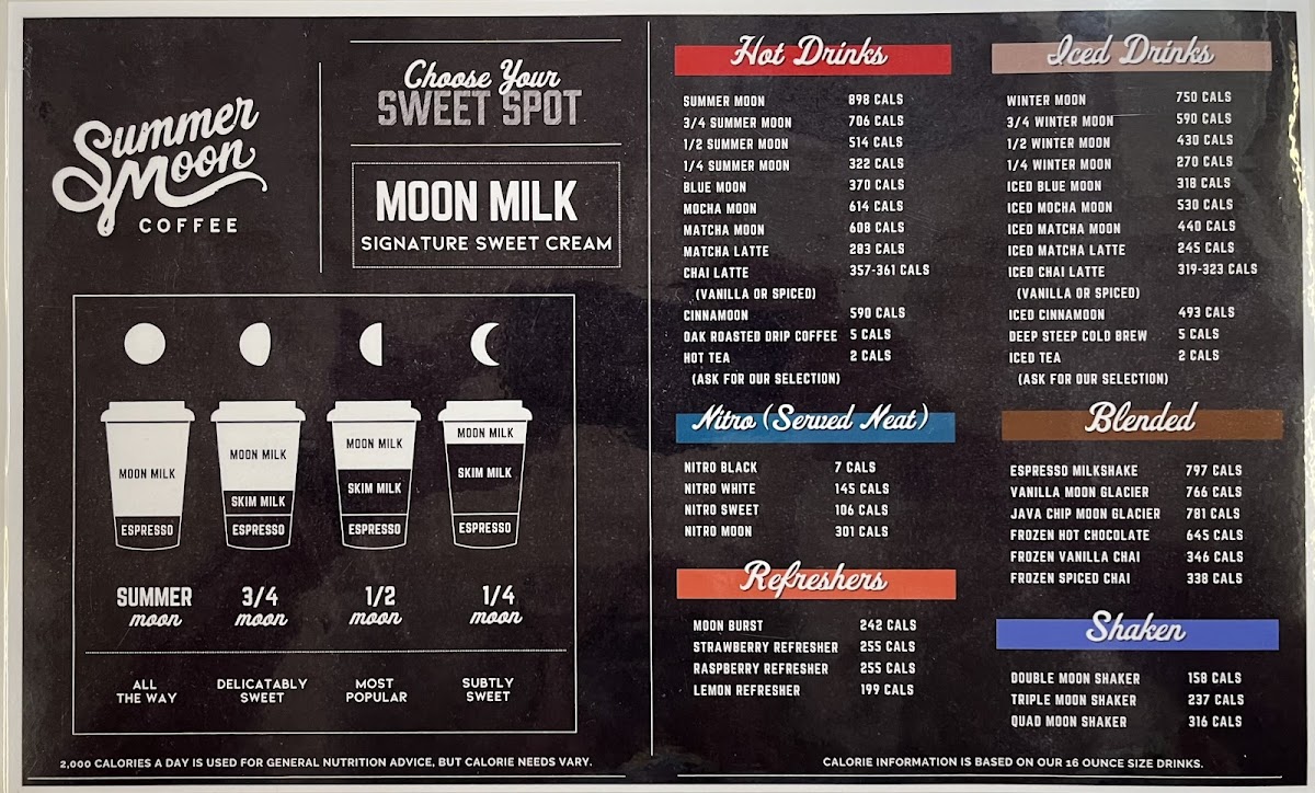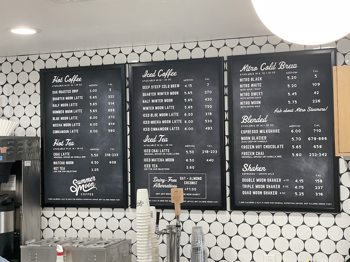 The menu at Summer Moon Coffee offers a straightforward selection of thoughtfully crafted beverages and light bites, perfect for a relaxed café experience. Whether you’re stopping by for a morning pick-me-up or an afternoon pause, the focus is on comforting drinks made with care and a touch of creativity.